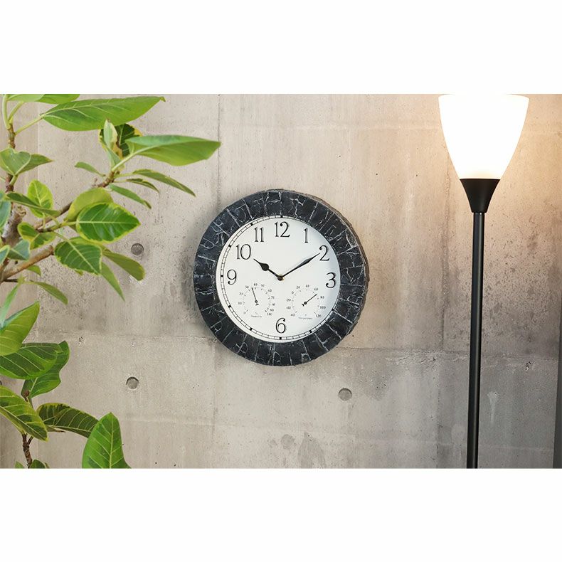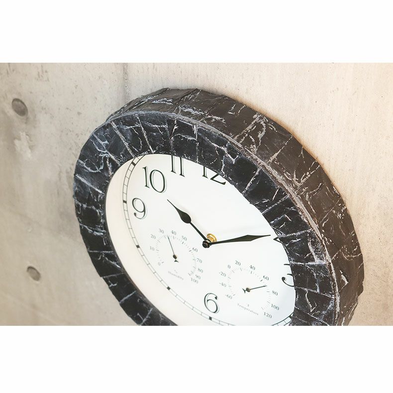 石目柄が印象的な温湿度時計付き壁掛け時計。