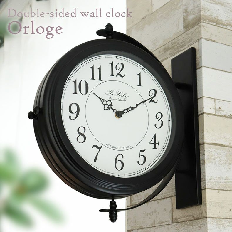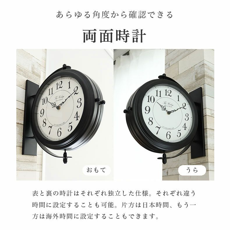 壁や柱に横付けできて、両側から見やすい両面掛け時計です。