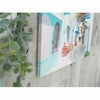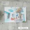 サントリーニ島の美しい街並みを描いたキャンバスアート「サントリーニ」。気軽にアートを楽しめます。背面には、 壁に掛けられるように金具が上部2ヶ所についています。