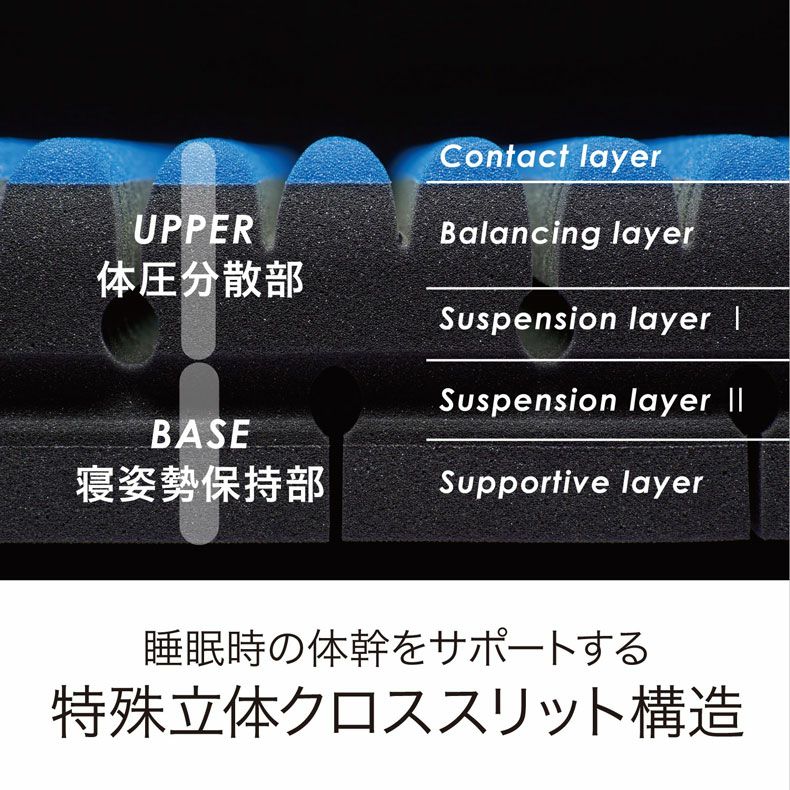 ベース層でしっかり体を支え寝姿勢が安定。睡眠時の体幹をサポートする特殊立体構造。