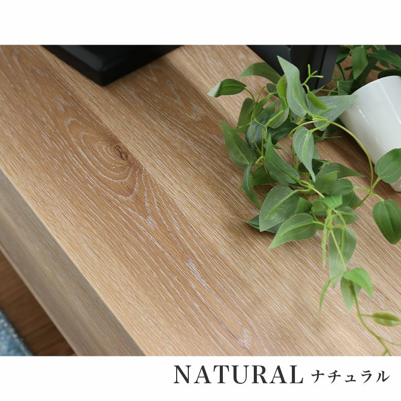 リアルな木目シート×スチール脚の組み合わせがおしゃれな国産テレビボード「タティス」。背面には配線孔付き。