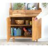 真鍮のつまみがアクセントになっており、つまみを引いて正面の扉を開閉できます。
