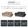 背・両肘・座面の4カ所リクライニングの多機能ソファ「グランデ」。内部ギアは信頼の国内メーカー「KOYO」製です。