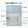 #食器棚#食器入れ#レンジ台#レンジボード#カップボード#水屋#水屋箪笥#キッチンボード#キッチンキャビネット#WH#ホワイト#白#国産#オリジナル#コンセント有り#フルスライド#モイス#上下分割搬入可