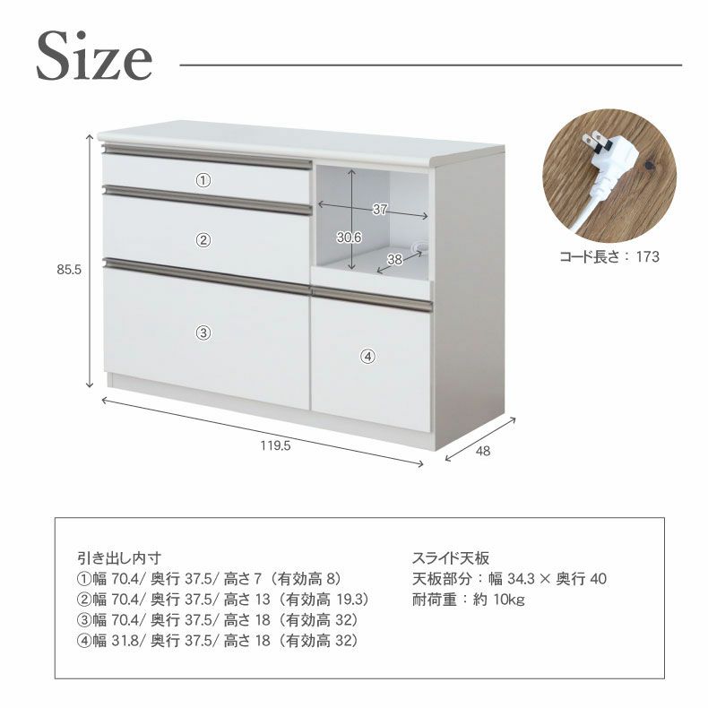 | サイズ | 幅119.5×奥行48×高さ85.5(cm) |