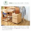 天然木の優しい木目を活かしたデスク、上置き、ワゴンの3点セット。学習デスクの天板と前板にはアルダー無垢材を使用。フルオープンスライドレールでA4サイズ対応のワイドな引出し2杯。