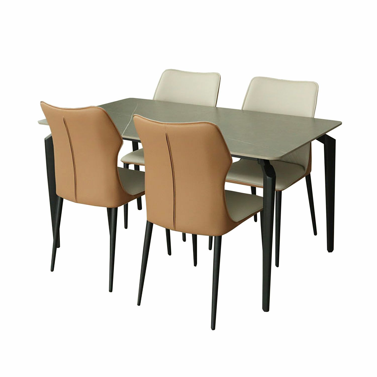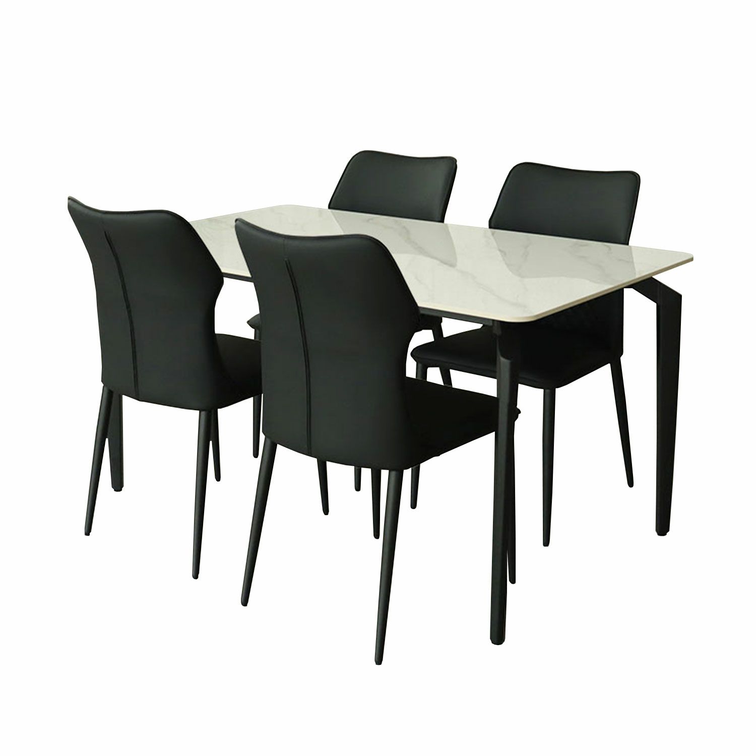 #ダイニングセット#ダイニングテーブルセット#食堂#5点セット#2人用#4人#4脚#ダイニング#センチ#BK#ブラック#黒##BR#ブラウン#茶色#合皮#アーム無#石目調#セラミック天板#スクエア型#アジャスター有#合皮座面#スチール脚