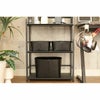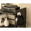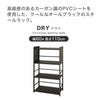高級感のあるカーボン調のPVCシートのクールなスチールラック「ドライ」。側面のパンチングパネルは、マグネットやS字フックなどを使用して物を掛けられ、スペースの有効活用に。