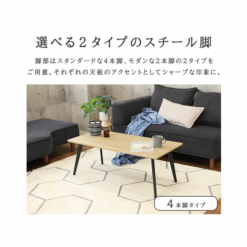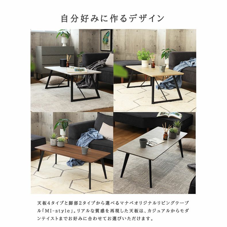 天板4タイプと脚部2タイプから選んで自分好みに作るセンターテーブル「MIスタイル2」。天板には熱やキズに強いメラミン加工を施しました。