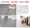 おしゃれなモルタル柄の天板は、硬く耐久性に優れたドイツ製のメラミン樹脂素材。