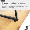 デスク天板には簡単なラック付き。 デスク本体に取付け式で取付け位置を自由に決めることができます。