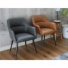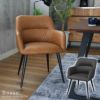 ヴィンテージ感漂うフェイクレザーと細身のスチール脚の組み合わせ。