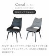 PUレザー張りとファブリック張りの2タイプから選べるモダンダイニングチェア「コーラル」。椅子を動かさずに座面を回転させて座ることができるので、場所を取らず立ち座りもらくらくです。