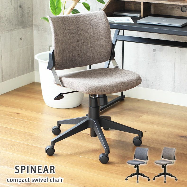 身体にフィットするコンパクト回転チェア「スピネア」。疲れた時に背伸びができるロッキング機能付き。座面はスムーズに360度回転します。