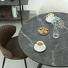 デザイン性、耐久性に優れた石目調メラミン天板のダイニングテーブル「フレッド」。耐久性、耐熱性に優れ、キズや焼け跡、汚れがつきにくいメラミン天板。