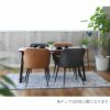 チェアはヴィンテージ感漂うフェイクレザーと細身のスチール脚の組み合わせ。