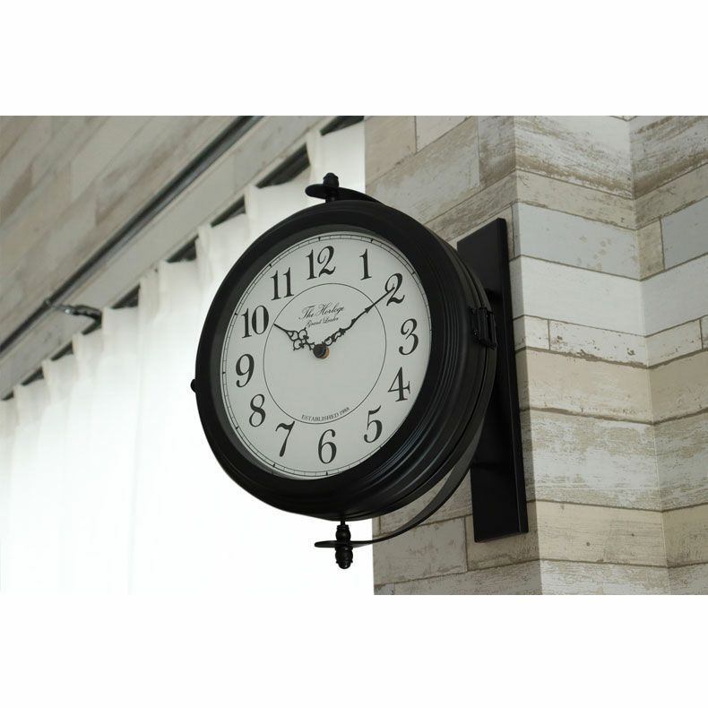 壁や柱に横付けできて、両側から見やすい両面掛け時計です。
