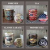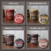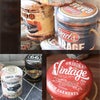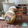 レトロなアメリカンデザインをプリントしたアンティークスツール。フタを開ければたっぷり入る収納スペースに。
