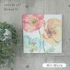 水彩で描かれた3色のキャンバスアート「フラワー2」。気軽にアートを楽しめます。背面には、 壁に掛けられるようにフレームにフック用の穴が開いています。
