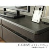 木目調ハイグロスホワイトとセラミック調グレーTVボード「カロス」。