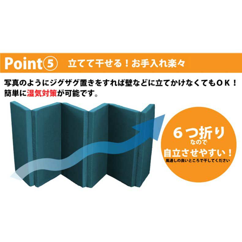 来客時、お昼寝、車載用、ヨガマットなど使いやすいサイズ「スモールセミシングル 6つ折りどこでもマットレス」。