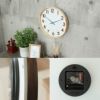 レジンx木目の新しいデザインの掛け時計「フィリップ」。木目の文字盤が立体的で、かわいい雰囲気に。