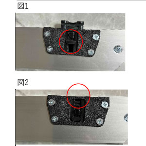 ①図1の赤丸の黒いレバーがレールの左右に付いているのを確認してください。